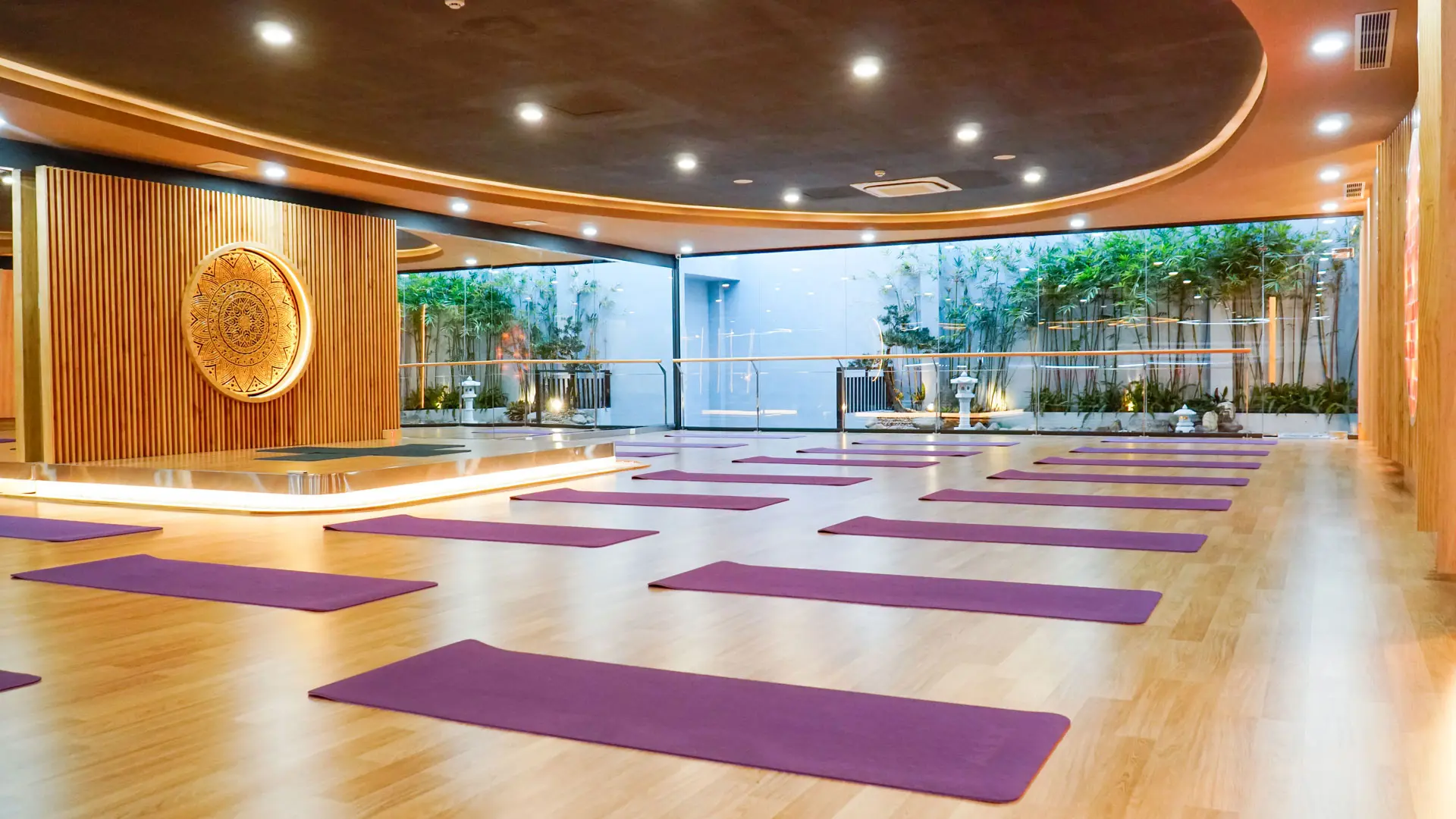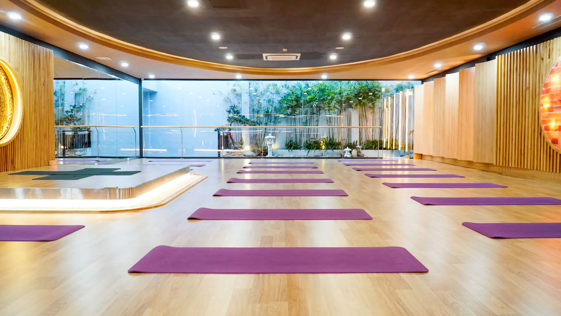 Phòng Yoga đá muối tại Seven Gym được đầu tư bài bản từ nhiệt độ, ánh sáng đến chất liệu sàn tập, tạo nên môi trường cân bằng và tối ưu cho việc luyện tập.